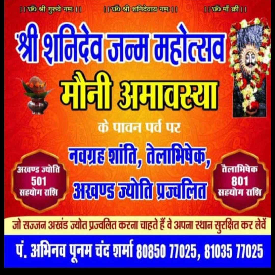अखंड ज्योति और रुद्राभिषेक कराने वाले शनि भक्त मंदिर जाकर संपर्क कर सकते हैं। यह आयोजन भक्तों के लिए विशेष आध्यात्मिक अवसर साबित होगा।