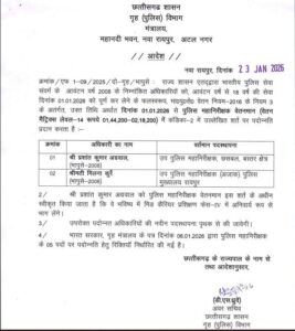 छत्तीसगढ़ में IPS अधिकारियों का बड़ा फेरबदल : रायगढ़ के नए एसपी बने शशि मोहन सिंह.. देखें लिस्ट 22 January, 2026
